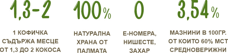 Съдържа само месо от млад Тайландски кокос и живи пробиотични култури в експлозивен обем.